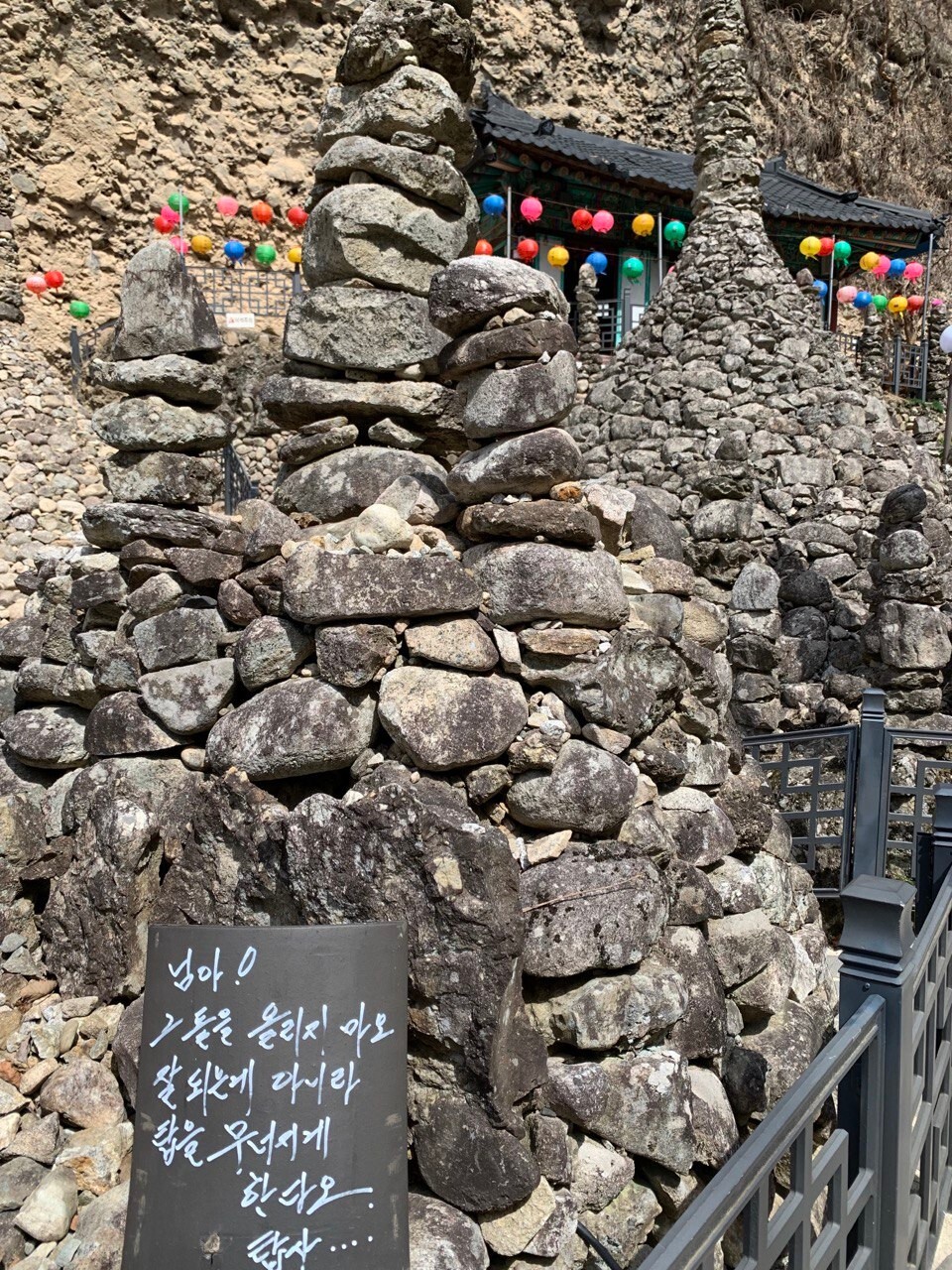 마이산 탑사, 그어떤 태풍에도 무너지지 않는데 사람이 억지로 돌을 끼워넣으면 무너지기도 하나봐요.